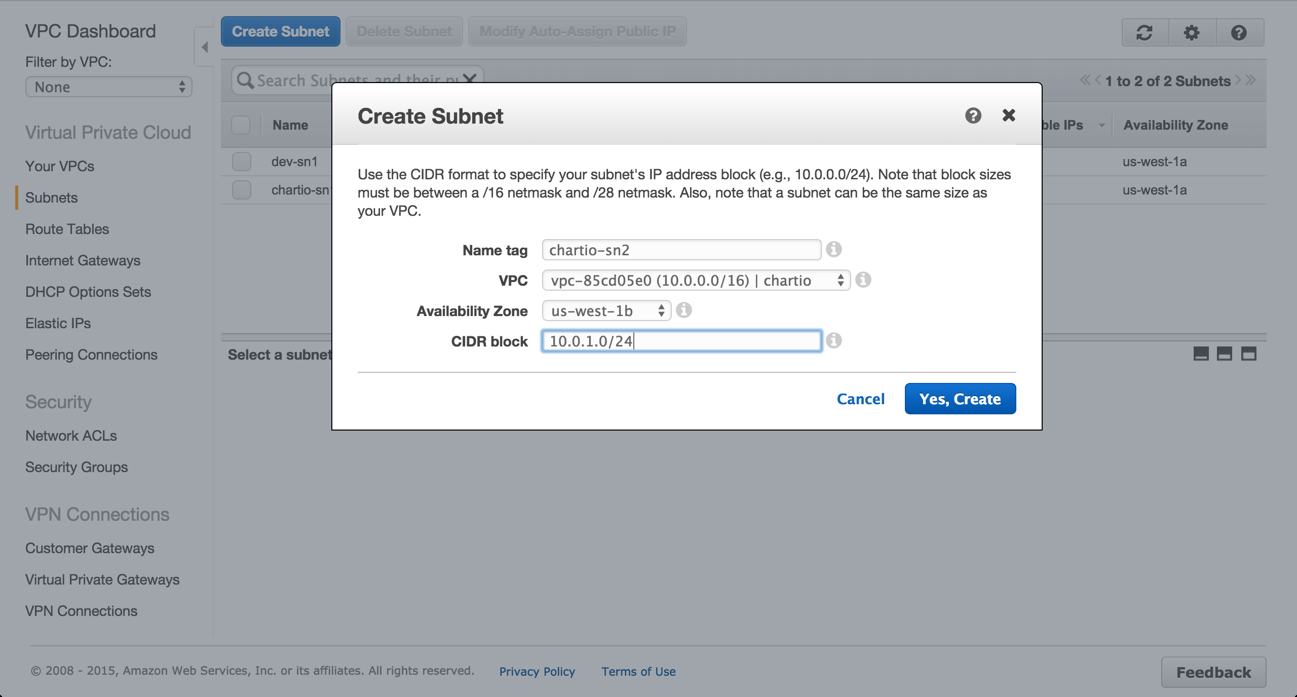 On the Internet Gateways tab of the VPC Dashboard, create a new Internet gateway.