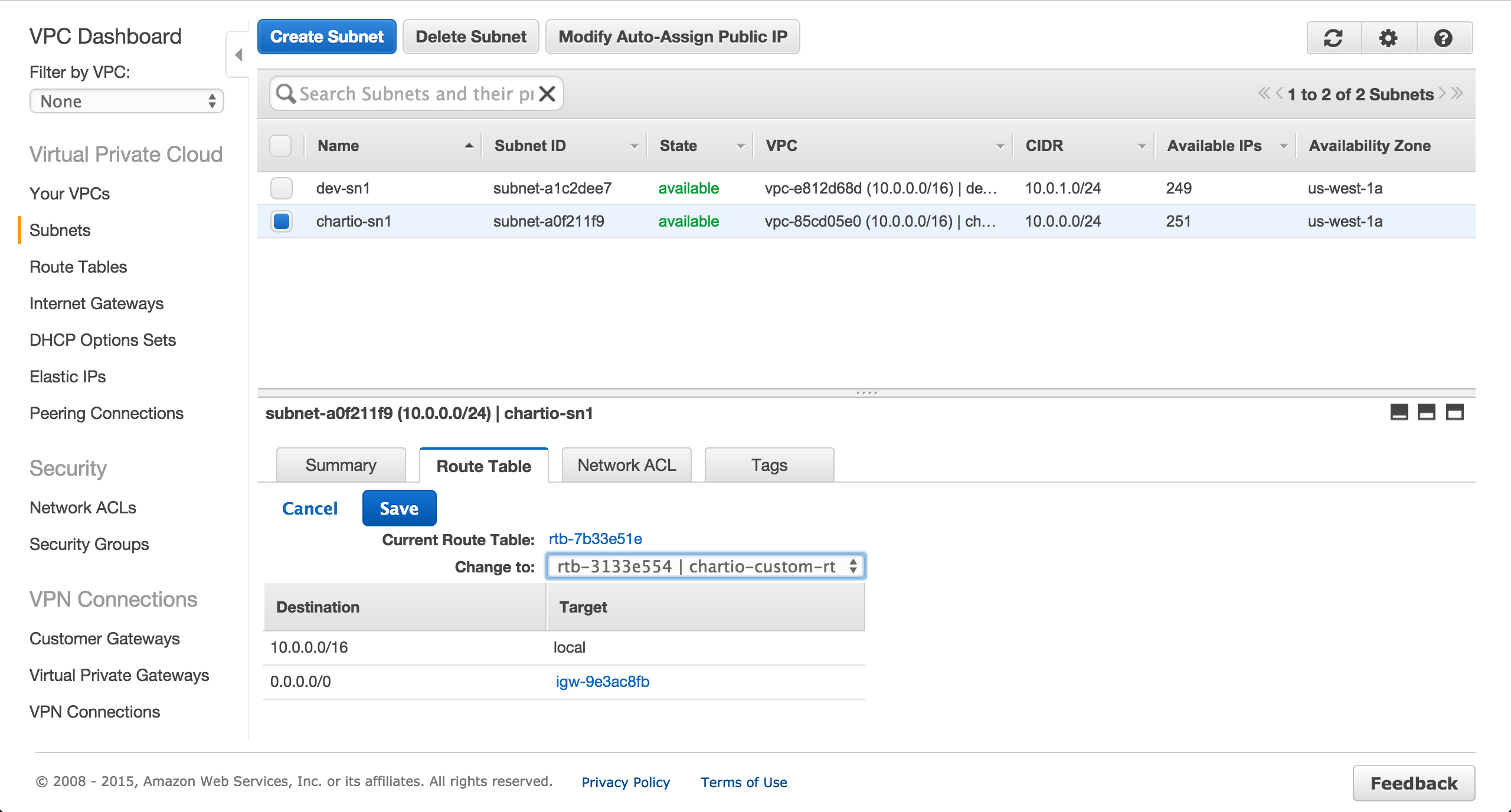 Change the route table for the previously created subnet from the main route table to the custom route table.